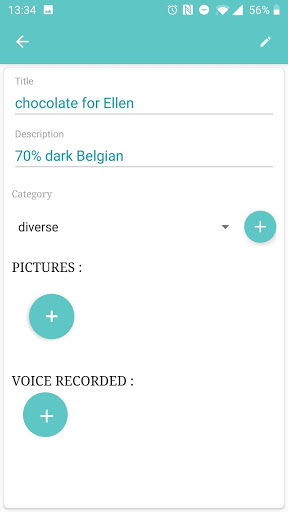 당신이 좋아하는 것에 대한 정보를 유지하고 저장할 수있는 빠르고 쉬운 방법입니다. 예를 들면 : 당신이 좋아하는 와인 한 병이나 생일이 오면 누군가를 위해 가고 싶은 선물. 멋진 특징 : 1.텍스트로 정보를 저장하고 사진을 찍거나 음성 녹음을 추가 할 수 있습니다. 2.나중에 쉽게 액세스 할 수 있도록 범주별로 모든 것을 구성하십시오. 3.빠른 검색 저장된 항목의 BIJ 이름 또는 범주.