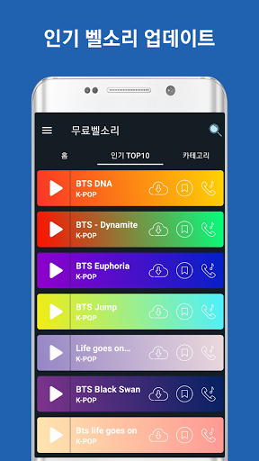 최신 무료 벨소리 다운로드 트렌드한 스마트폰 사운드 제공 다양한 스마트폰 경고음,알람음 15,000 곡 이상 평생 무료로 사용 좋아하는 '벨소리'를 선물 하거나 쉽게 찾을 수 있습니다. 벨소리 바꾸는법도 편리 합니다. 100% 평생 무료입니다. 감사합니다.