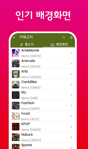 다양한 벨 소리와 배경화면 앱은 휴대폰을 받을때 마다 신선함을 선사합니다.