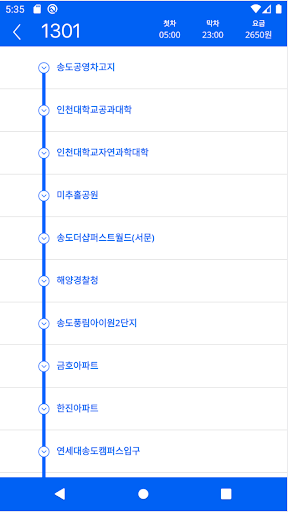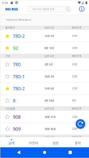INU BUS는 자연과학대학, 공과대학, 인천대정문의