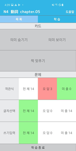 카드학습과 단어 짝맞추기로 단어를 학습할 수 있습니다.