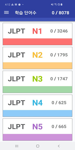JLPT 급수별 품사별로 단어를 학습할 수 있습니다.