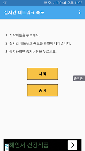 시작버튼을 누르면 화면에 실시간으로 네트워크 속도를 보여줍니다.