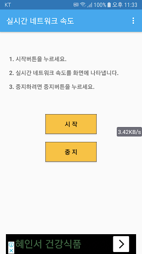 이 어플은 실시간 네트워크 속도를 측정해 화면에 보여줍니다.