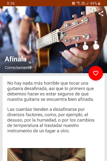 Con esta app obtienes un tutorial entero con los mejores tips y consejos para preparar tu guitarra y tocar tus canciones favoritas con ella.