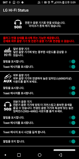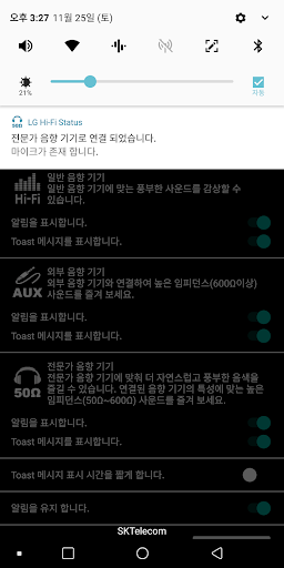 Hi-Fi 연결 상태를 알림 아이콘으로 표시합니다.