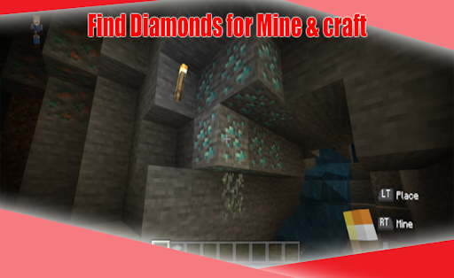 Use this app to find diamonds in the world's favourite mining and crafting game! Get the pickaxe and mine. Put down your crafting bench and craft. Mine past iron, gold, red stone and coal to get to what we all know we need! One diamond, two diamonds, three diamonds, more! This app is also great for those who do speed run trials, as you can find ore as quick as possible to beat those records!