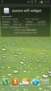This is a widget which shows your current wifi connection details. It shows informations includes connected access point's SSID, BSSID, link speed etc. In addition, by click on the widget, user can open an Wifi Utility application. It shows the access points scanning results with sorting feature. It is convenient for wifi expertise to analysis the wifi signals.