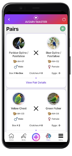 Aviary Master는 최상의 조류 관리 앱으로 서서 잃어버린 종이 기록, 뒤죽박죽 계산 시트 및 흩어진 달력 노트의 좌절을 지우고 있습니다.이 포괄적 인 도구는 새, 페어링, 계란 및 육성 디지털 솔루션을 제공하는 조류의 관리를 단순화합니다.Aviary 데이터를 클라우드에 쉽게 업로드하고 다양한 장치에서 편리하게 액세스하십시오.조류 마스터와 함께 조류 애호가들은 깃털이있는 동반자를 효율적으로 추적하고 육성하여 조류 관리를 산들 바람으로 만들 수 있습니다.