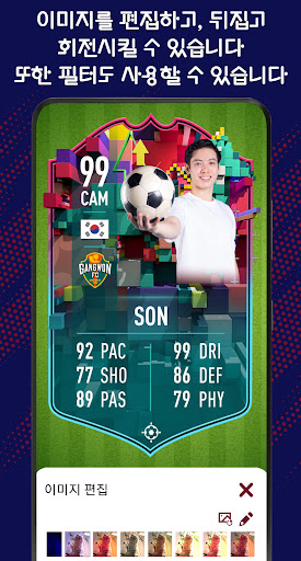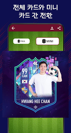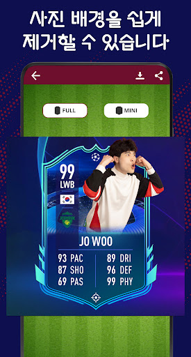 자신만의 선수 카드를 만들어서 가족과 친구들과 공유하거나, 좋아하는 팀을 응원하는 프로필 사진으로 사용하세요!