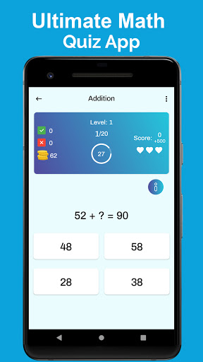 Do you love solving math problems, basic math quizzes, advance math quizzes, etc.? This is a Fun Math Trivia Game containing Brainy Math Puzzles & Quizzes which helps you to learn basic problems, equations, sequences, series, etc.