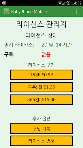 라이선스 요금 (발신장치: 아기 장치):