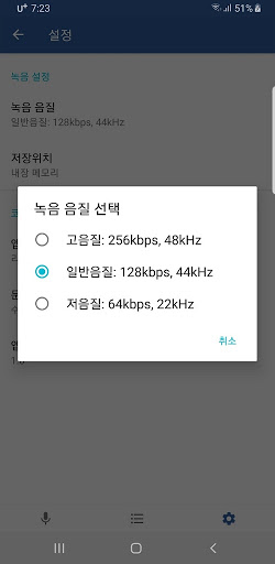 녹음음질 선택
