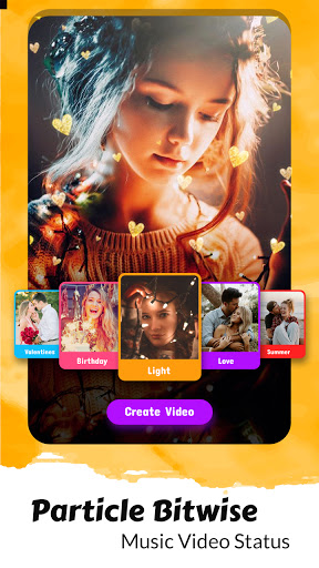 You can make Unique video status for Love, Anniversary, New Year wishes, Valentine's Day, Birthday, God, Festival and Greetings with Beat wise particle effects with your favorite selected song track. Want to gift your beautiful love story in videos to your best love one? M-Bit video status maker is perfect app to create music beat wave effect from all your best photo. Make Video With Animated beat effect and many lovely effects.