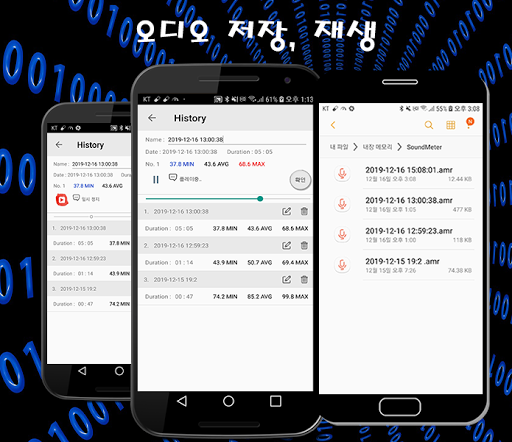 * 스마트폰은 고성능 마이크를 사용하는 소음측정 전문장치가 아니기 때문에 "최대값"은 폰 마이크 종류에 따라 다를 수 있습니다.