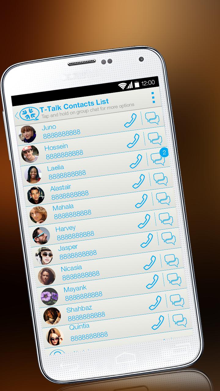 “T-Talk” breaks the languages barrier by the use of real time translation for text chat and voice call. Also you can make FREE international calls, send free SMS, photos and videos to anyone, anywhere with this app to another app user world-wide over WIFI, 3G and 4G.