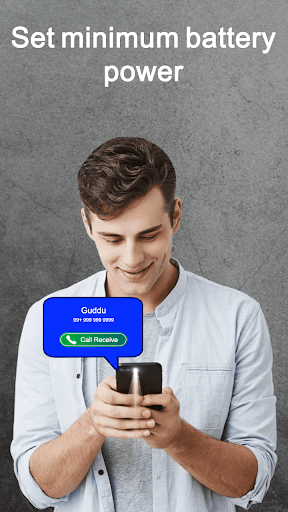 In the app, you can set a battery limit, if the current battery is greater than the limit, then only the flashlight will blink on a call.