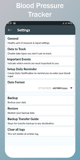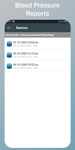 PDF 또는 Excel 형식 파일로 건강 보고서를 내보낼 수 있습니다. 나중에이 파일을 열고 공유 및 삭제할 수 있습니다. 로컬 장치 또는 Google 드라이브에서 건강 데이터를 백업 할 수 있습니다. 백업에서 오래된 건강 데이터를 복원 할 수 있습니다.