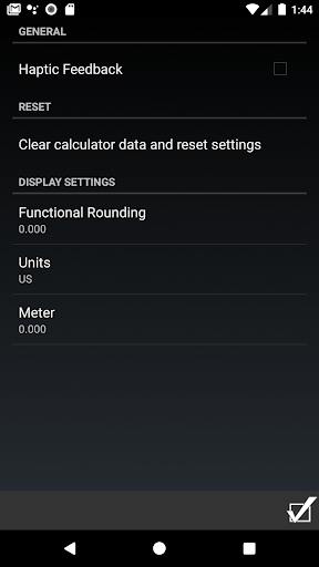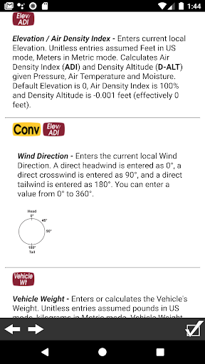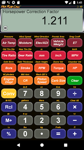• 절대 압력, 공기 온도, 수분, 고도, 공기 밀도 지수 및 밀도 고도, 풍속 및 방향을 포함한 로컬 트랙 조건을 입력하거나 계산하고 경과 된 시간 (ET) 및 속도에 미치는 영향을 예측합니다. • 차량 중량 및 마력 또는 타이어 직경, 기어비 및 rpm을 주어주는 속도를 계산합니다.