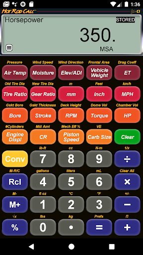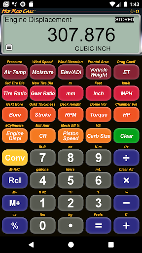 엔진 변위, 압축을위한 솔루션이있는 훌륭한 자동 성능 튜닝 계산기 비율, 기어 비율 등.