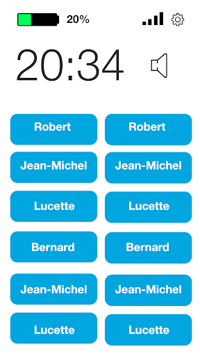 연락처의 발성 '이름, 시간, 배터리 수준 및 네트워크라는 이름. 연락처의 이름에 대한 대비의 선택.