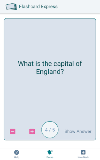 다가오는 테스트 및 시험에 대한 중요한 정보를 공부하고 암기하는 데 도움이되는 FlashCards Maker 앱으로 자신의 대화식, 전자 플래시 카드를 만드십시오.당신의 개인적인 창조 된 질문에 퀴즈, 연구 및 지식을 시험하고 시험하십시오!아니면 선택 주제에 대한 지식을 넓히고 싶을 수도 있습니다.FlashCards Maker는 원하는대로 갑판에 많은 카드를 추가 할 수 있으므로 자신의 지식을 공부하고 테스트 할 수 있습니다.