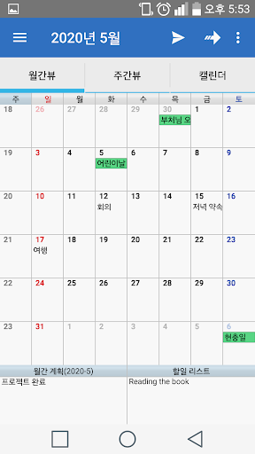 친구들과의 미팅 일정, 회사 업무에 관한 일정, 가사에 관한 일정을 입력하여 관리하고 필요하면 원하는 시간에 알림을 받을 수 있습니다. 날짜에 관한 일정 외에, 월별 계획과 주간별 계획을 입력하고 관리할 수 있습니다.