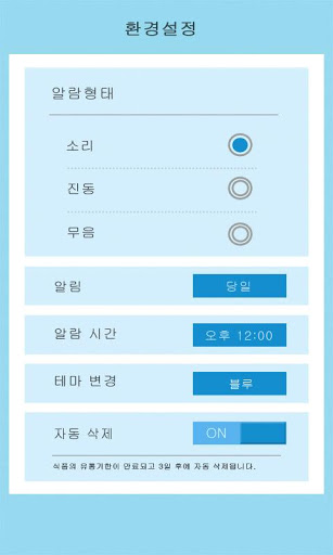 또한 유통기한을 입력해 놓으면 내가 설정한 대로 유통기한 알람 서비스를 제공하므로