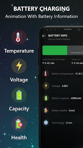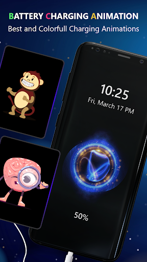다양한 충전 애니메이션 카테고리 또는 전화 갤러리에서 애니메이션을 선택하십시오.앱 설정에서 충전 애니메이션 서비스를 활성화하여 충전기에 배터리를 연결했을 때 애니메이션을 표시합니다.이 앱은 충전기를 연결했을 때 화면의 시간 또는 배터리 백분율을 표시/숨기는 것을 좋아하는 충전 화면의 사용자 정의를 제공합니다.