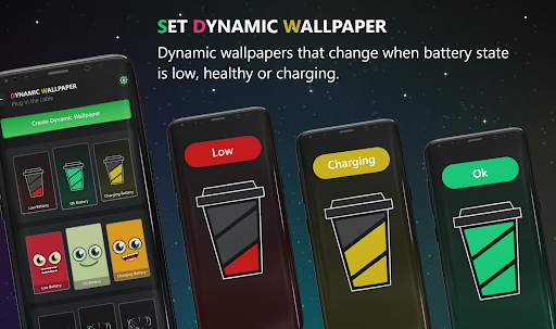 장치 배터리 수준에 따라 홈/잠금 화면 벽지 변경.다양한 다이나믹 월페이퍼 카테고리에서 배경 화면을 선택하거나 갤러리에서 선택하거나 자신만의 사용자 정의 벽지 화면을 만들 수 있습니다.앱 설정에서 동적 월페이퍼 서비스를 활성화하여 전화 배터리 레벨로 전화 배경 화면이 자동으로 변경됩니다.