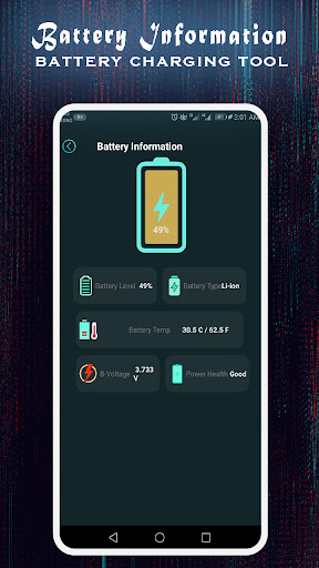 전화 충전 애니메이션 앱배터리 정보 제공 옵션 옵션도 배터리 건강, 온도, 유형, 충전 레벨 및 배터리 전압을 확인할 수 있습니다.따라서 한 앱에서 이러한 모든 옵션에 쉽게 액세스 할 수 있습니다.