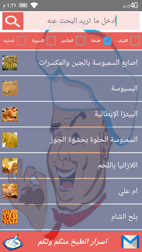 وايضا يمكنك البحث من خلال اسم الشيف او اسم الطبخة او مكونات الطبخ وفترة تسويتها