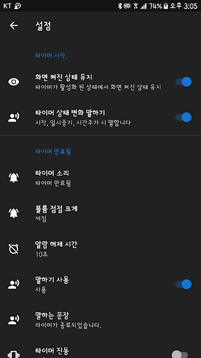 타이머 작동 중 화면이 꺼지지 않아 눈으로도 확인이 가능합니다.