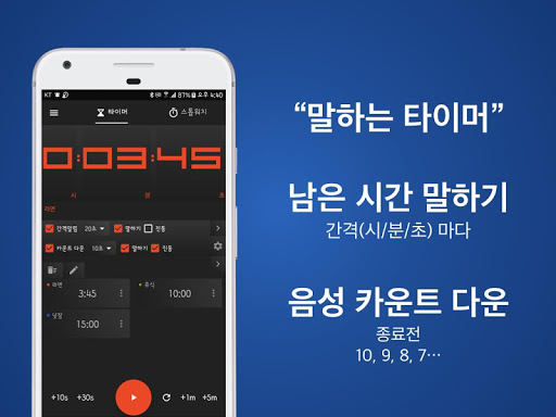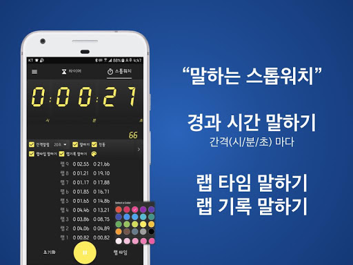 남은 시간(Timer) / 지난시간(Stopwatch)을 말(음성)로 알려주므로 화면을 보지 않고도 시간의 흐름을 알 수 있습니다.