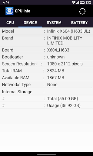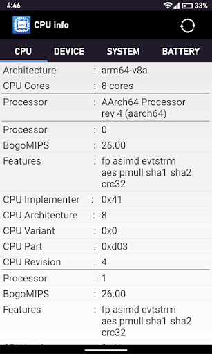 CPU-Z 앱은 전화 장치에 대한 정보를 제공합니다