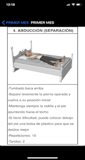 Incluye una completa guía de ejercicios para realizar por el paciente antes de la cirugía, en el hospital y en casa, en función de la semana postoperatoria.