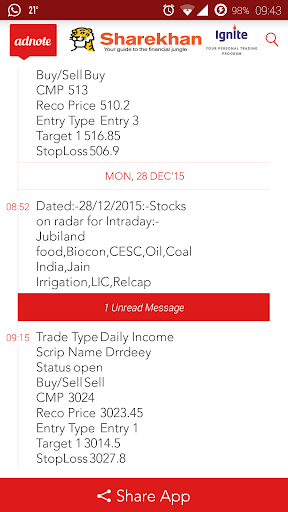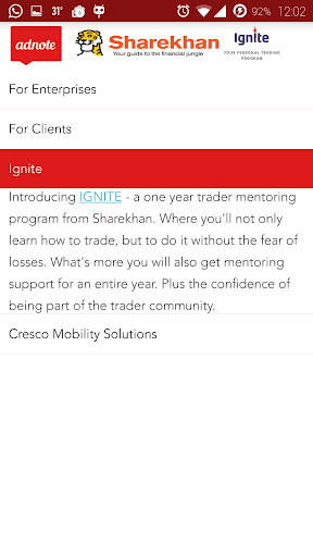 Ignite Messenger is for trade mentees of the one-year IGNITE trader mentoring program from Sharekhan, where you not only learn how to trade, but to do it without the fear of losses. What's more you also get mentoring support for an entire year. Plus the confidence of being part of the trader community.