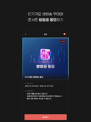 더 나아가 아티스트의 성장과 콘텐츠 생산에 직접 참여하여 새로운 팬덤의 문화를 만들고, K-POP의 모든 것을 경험할 수 있도록 다양하고, 새로운 기능과 서비스를 제공합니다.