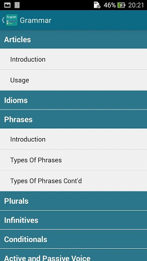 • Active Or Passive Voice, Adjectives, Adverbs, Articles, Auxiliary Verbs, Conditionals, Conjunctions, Determiners, Idioms, Interjections, Introduction, Nouns, Phrases, Prepositions, Pronouns, Quantifiers, Question Tags, Reported Speech, Tenses, Verbs.