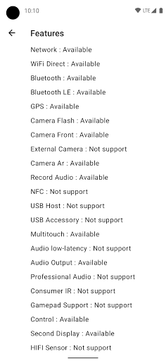 * Bluetooth: Offers features such as Bt name, mac address (May not be supported on some devices), Scan mode, Bt Status, Bt discovery.