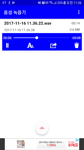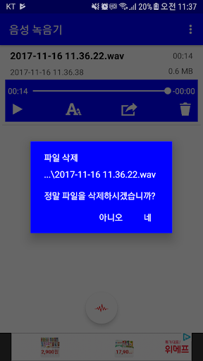 음성 메모 (음성 녹음) 간단하게 음성으로 메모를 할수 있는 음성 녹음기 입니다. 목소리, 음성으로 메모를 남기고 싶으면, 사용하세요. 별다른 기능은 없지만, 음성 녹음 기능은 강력합니다. * 권한 필수적 접근 권한 . 마이크 : 녹음 기능 사용을 위한 목적 . 저장공간 : 녹음된 파일을 저장하기 위한 목적 선택적 접근 권한 . 권한을 필요로 하지 않음