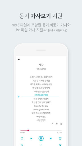 - .lrc 파일 가사 지원 (클라우드, 네트워크에 있는 .lrc 파일도 지원)