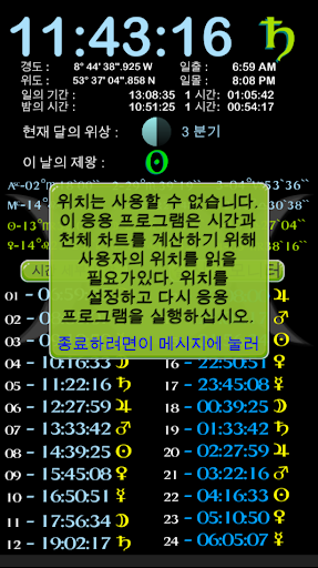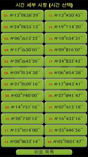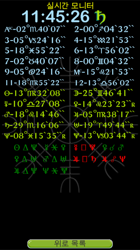 • 주요 행성의 위치와 함께 메인 화면의 조디악 메인 하우스