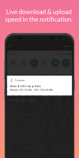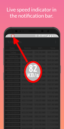 TJ Speedo- 인터넷 속도 미터는 상태 표시 줄에 인터넷 속도를 표시하고 알림 창에 사용되는 데이터 양을 보여줍니다.이것은 장치를 사용하는 동안 언제든지 네트워크 연결을 모니터링하는 데 도움이됩니다.