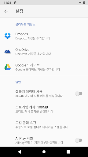 Dropbox, OneDrive 및 Google 드라이브 용 클라우드 음악 :