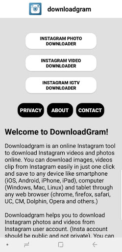 DownloadGram은 Instagram 사진을 다운로드하는 데 도움이되는 최고의 웹 사이트입니다. 쉬운 방법으로 비디오. PC에 Instagram Downloader 응용 프로그램이나 소프트웨어를 설치할 필요가 없습니다. Instagram 사진 및 비디오를 다운로드하는 방법을 검색하는 데 사용되는 사람들이 부족합니다. 이제 쉽습니다! 예! Android, iOS, Windows, Linux, Jave, Apple, IMAC 또는 다른 OS 장치와 같은 모든 장치에서 Instagram에서 Instagram에서 Media를 다운로드 할 수 있습니다. 시스템에 만 설치 한 브라우저가 인스 타 그램에서 모든 파일을 잡아합니다.