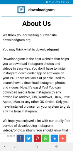가상 우리는 당신이 인스 타 그램 비디오 / 사진 / 앨범을 다운로드하는 우리의 완전 무료 서비스를 많이 즐길 바랍니다. DownloadGram이 영원히 자유롭게 될 것이라는 것을 알아야합니다. 우리는 감사의 우편물을 얻었습니다. 귀하의 우편물에 많은 감사드립니다. DownloadGram의 기능 :