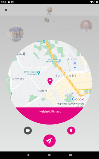 가상 공유 위치는 당신이 안전 알 수 있도록 당신이 어디에 당신의 사랑하는 사람에게 알려주십시오 그림입니다. 흥미 진진한 새로운 장소로 여행 할 때 위치를 공유 할 수도 있습니다. 사랑하는 사람이 당신의 모험을 따르도록하십시오.