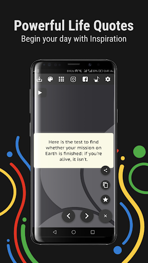 • 스 와이프 & 다음 옵션을 사용하여 많은 따옴표를 볼 수 있습니다. • 소셜 미디어를 공유하는 공유 옵션. • 평화로운 자연 음악을 재생 / 일시 중지합니다.