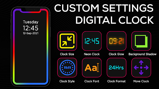 테두리 조명 HD로 디지털 시계를 설정할 수 있습니다. HD 및 4K 월페이퍼의 거대한 컬렉션